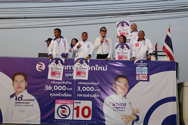 “การกากบาทครั้งนี้ คือโอกาสให้เจ้าบ้านไทยทุกครัวเรือนได้มีเงิน 36,000 บาท พรรคทางเลือกใหม่ กล้าคิด กล้านำ ทำจริง เบอร์ 10” ราเชนกล่าวทิ้งท้าย